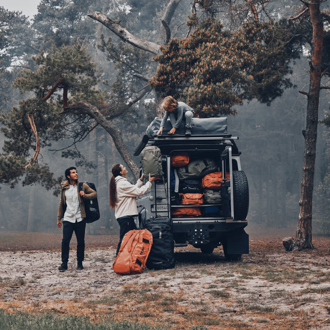 Thule Chasm es un bolso de lona resistente y siempre listo que se puede colocar en tu baúl convencional o un baúl de techo, y es perfecto para recorridos por carretera, viajes por tierra y otras aventuras remotas.
