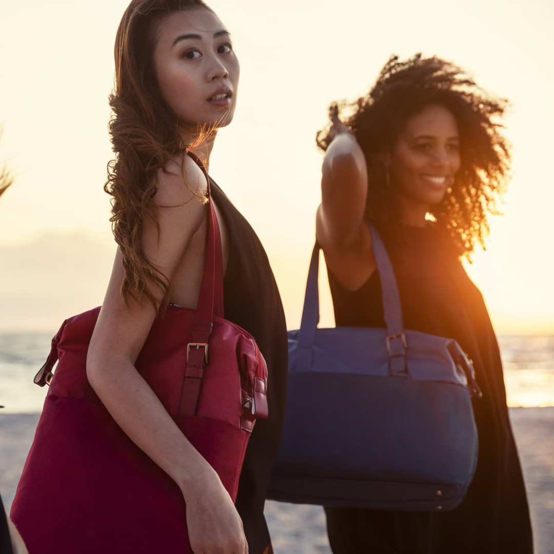 Un bolso de mano funcional y elegante que se expande para brindar espacio de almacenamiento adicional y se adapta a lo que el día te presente.